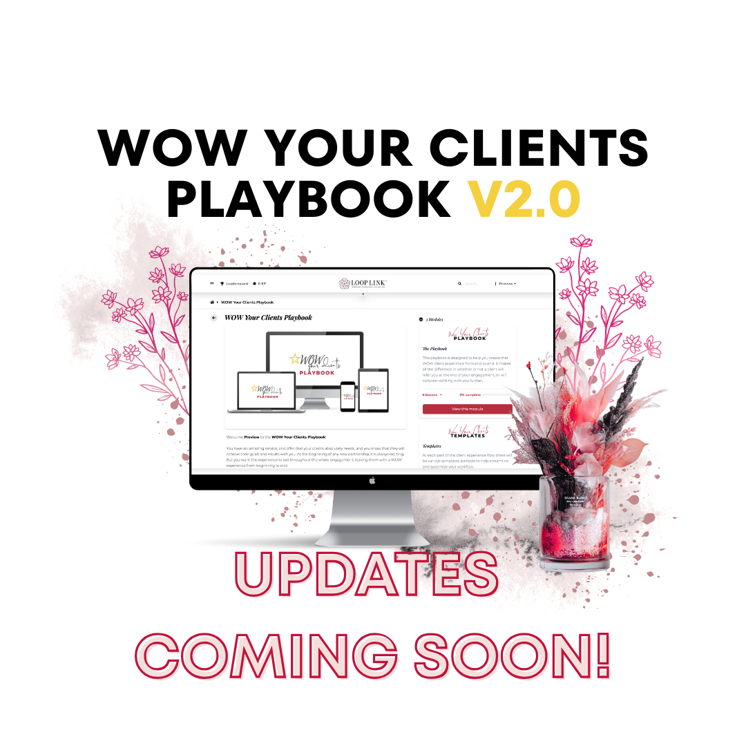 YOU'RE ON THE WAITLIST! WOW YOUR CLIENTS PLAYBOOK v2.0Coming soonWe'll be sure to let you know when it is released!